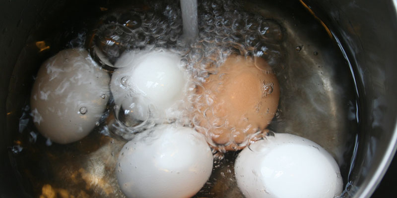 Khi luộc trứng thường phải cho vào từ đầu khi nước còn lạnh. Nếu sôi nước mới thả trứng sẽ nổ tung. Tại sao vậy? (Thuấn)
