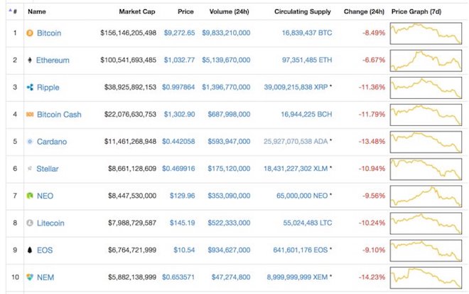 Các nhà đầu tư tiền ảo đang gặp khó trong tuần này. Đồng tiền áo bitcoin đã giảm tới mức giá thấp nhất trong vòng hai tháng qua, xuống dưới 9.000 USD lần đầu tiên từ tháng 11/2017. Tuần này cũng chứng kiến một màu đỏ báo động khi tất cả các đồng tiền ảo khác cũng đều giảm giá, dấu diệu cho thấy các nhà đầu tư đang tìm đường quay lại với đầu tư tiền mặt thay vì các đồng tiền ảo.